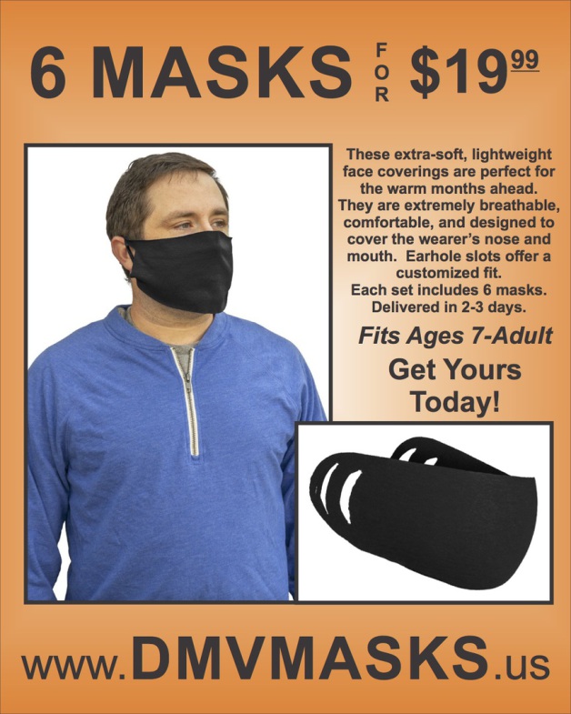 This extra-soft, lightweight face covering is perfect for the warm months ahead. They are extremely breathable, comfortable and designed to cover the wearer's nose and mouth. Earhole slots offer a customized fit. Each set included six (6) masks shipped directly to you in 2-3 days.